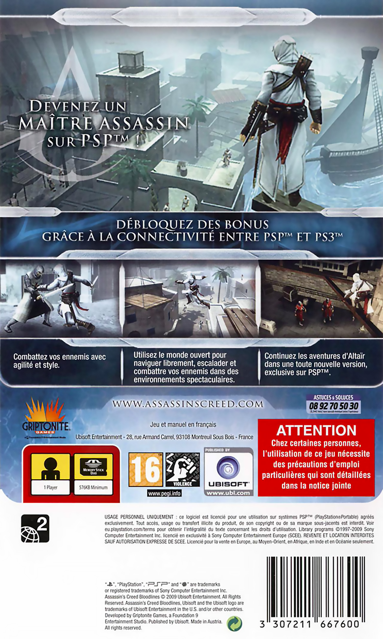 Dans Assassin's Creed : Bloodlines vous incarnez Altaïr qui se rend à Chypre afin de poursuivre l'élimination des templiers. 8 nouveaux types de missions sont proposées dans cet épisode qui sert de lien entre Assassin's Creed 1 et 2 et propose d'éclaircir certains mystères laissés en suspens dans le premier volet.