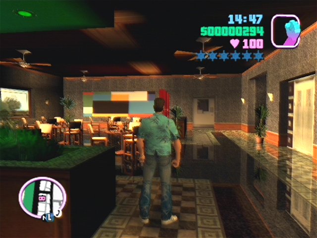 Tommy Vercetti qui doit enchaîner des missions diverses et variées dans une ville inspirée du Miami des années 80. Un certain nombre d'activités sont proposées en parallèle des missions de base : chauffeur de taxi, pompier, ambulancier...