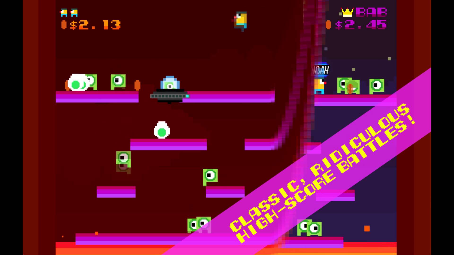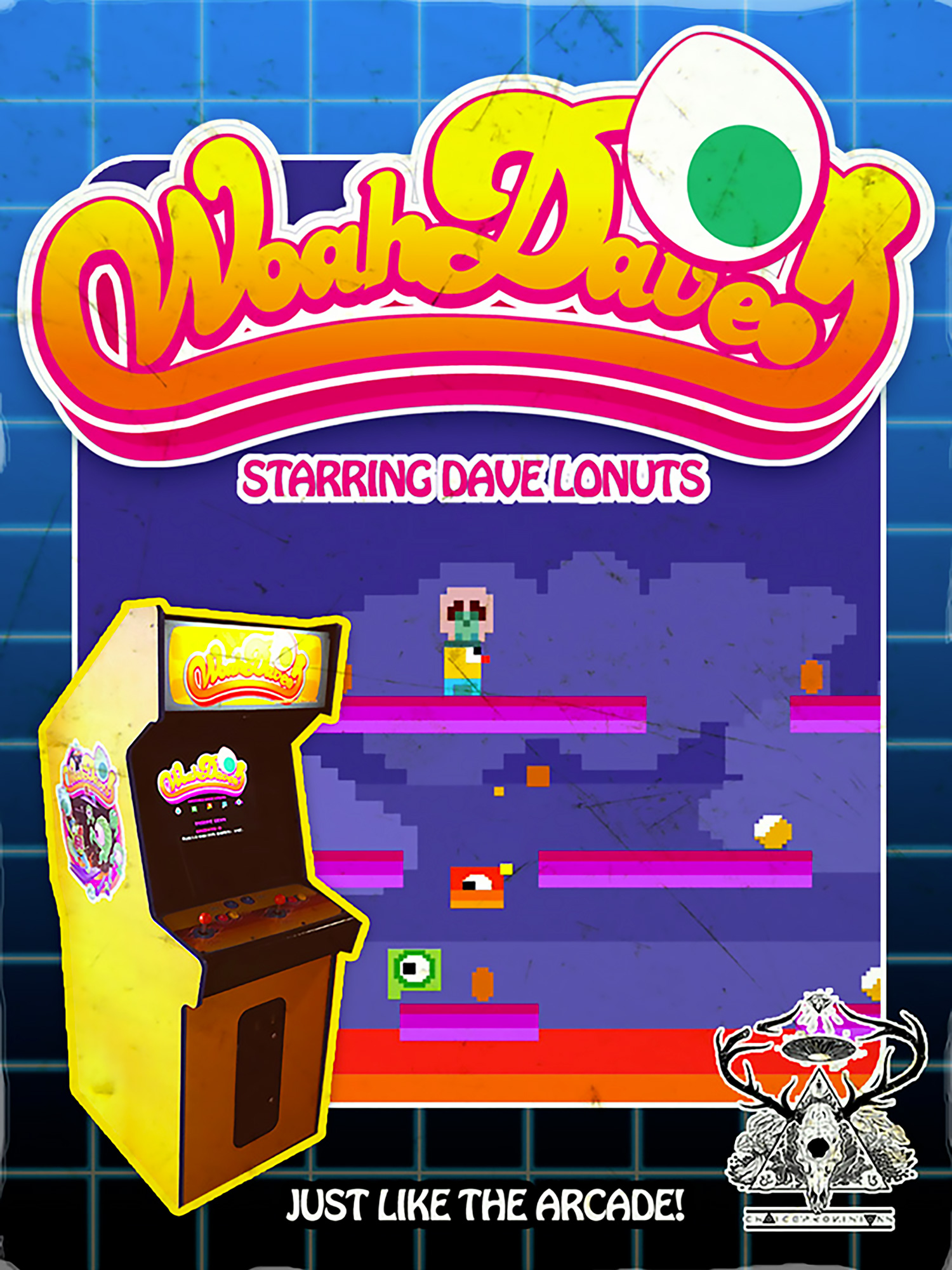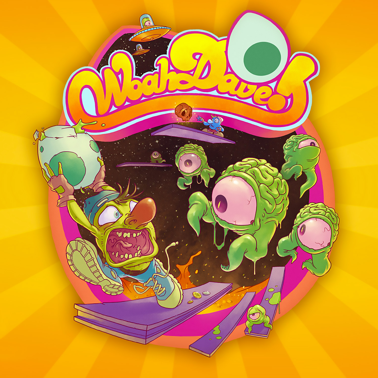 Dans un style purement arcade, Woah Dave! parcourt chaque tableau pour se débarrasser d’œufs d'aliens avant qu'ils n'éclosent.